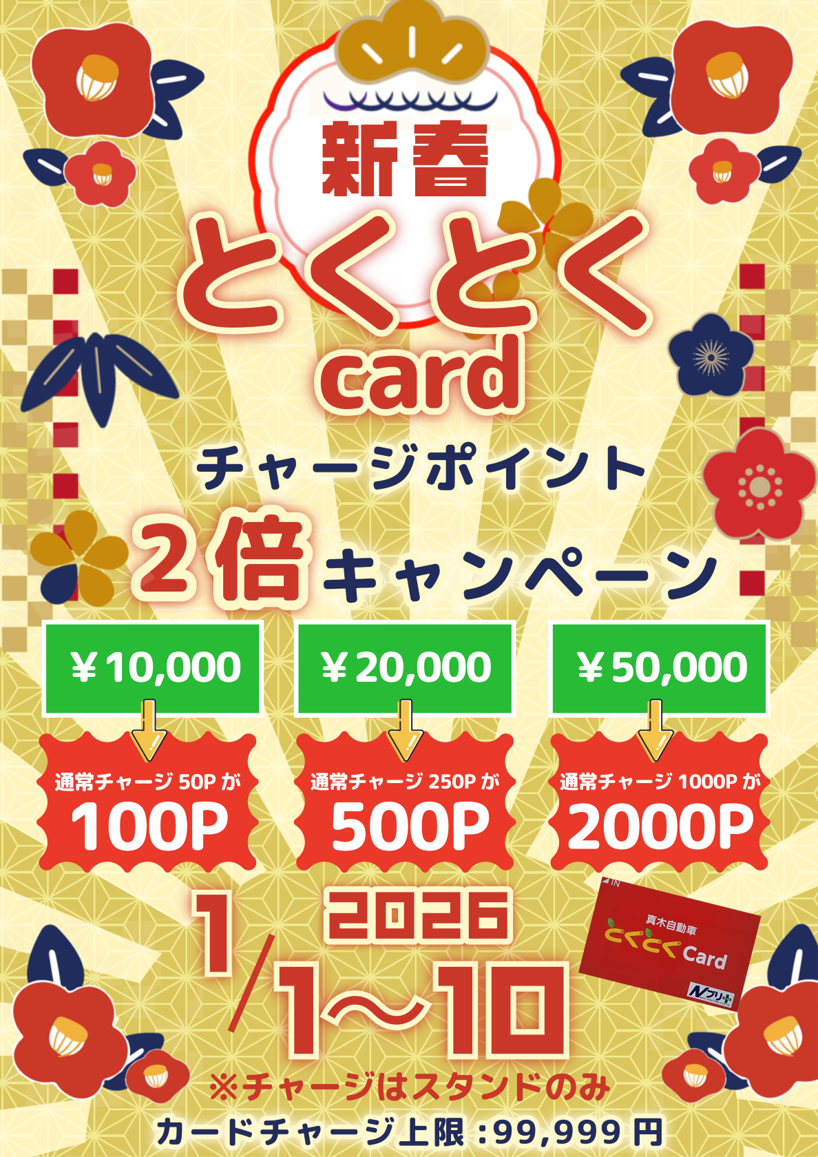 新春とくとくカードチャージポイント2倍キャンペーンを開催いたします
